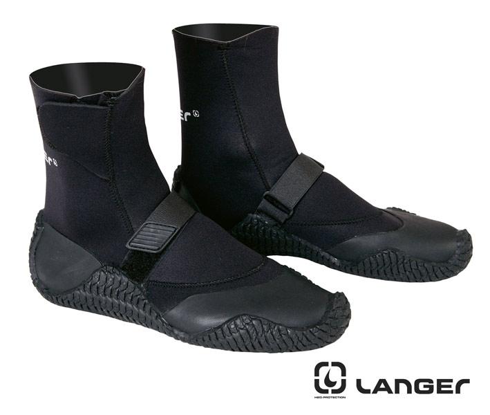 Неопренови боти Langer High Tops с дебела и допълнително втвърдена подметка предпазваща ходилото от набиване по камъните. Допълнителна лепка против изхлузване през ходилото и ластик със стопер на петата. Отлично сцепление по мокри повърхности и подсилени бордове на лесноизносващите се места.