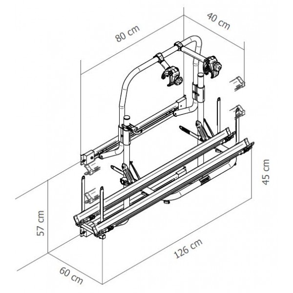 Thule Sport G2 Van, е багажник за два велосипеда и е предназначен за Ducato, Jumper, Boxer, Sprinter  VW LT до 2007 г. С ръчно заключваща платформа, допринасяща за стабилността на вашите велосипеди по време на транспортирането им, отваряне на задните врати заедно с поставените велосипеди, перфектна фиксация на велосипеда благодарение на иновативния дизайн на каишките, Регулируеми релси (ляво, дясно) които допринасят за правилното поставяне на велосипедите без усилие. Опция за лапи с ключалки за по-голяма сигурност на вашите велосипеди.