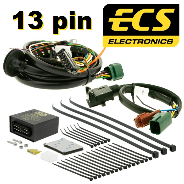 Електроинсталация за теглич ECS 13 pin за оригинално вграждане с модул и букси за автомобили със или без предварителна подготовка за монтаж и директно подключване към колата.