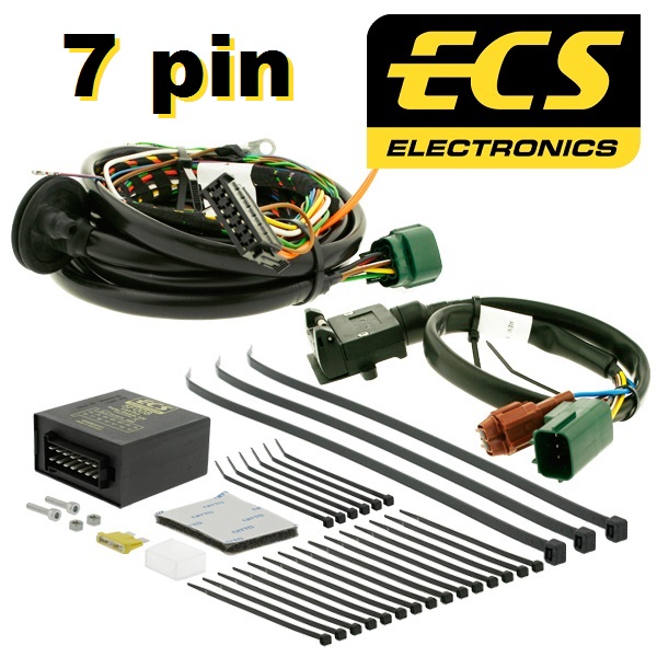Електроинсталация за теглич ECS 7 pin за оригинално вграждане с модул и букси за автомобили със или без предварителна подготовка за монтаж и директно подключване към колата.