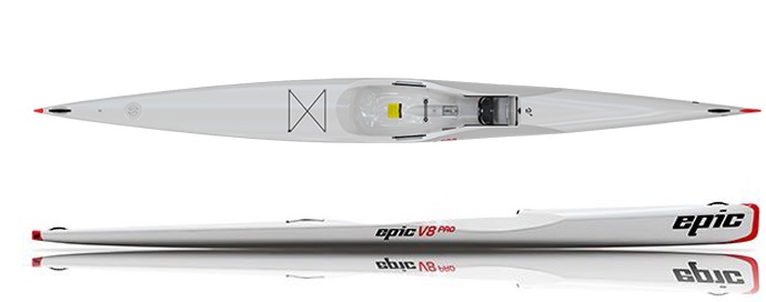 Употребяван морски сърф-ски каяк Epic V8 Pro в перфертно състезание, разбира се  с нов карбонат рул. Една от най-добрите хибридни лодки, подходящи както за фитнес и тренировка, така и за гнай-големите вълни.